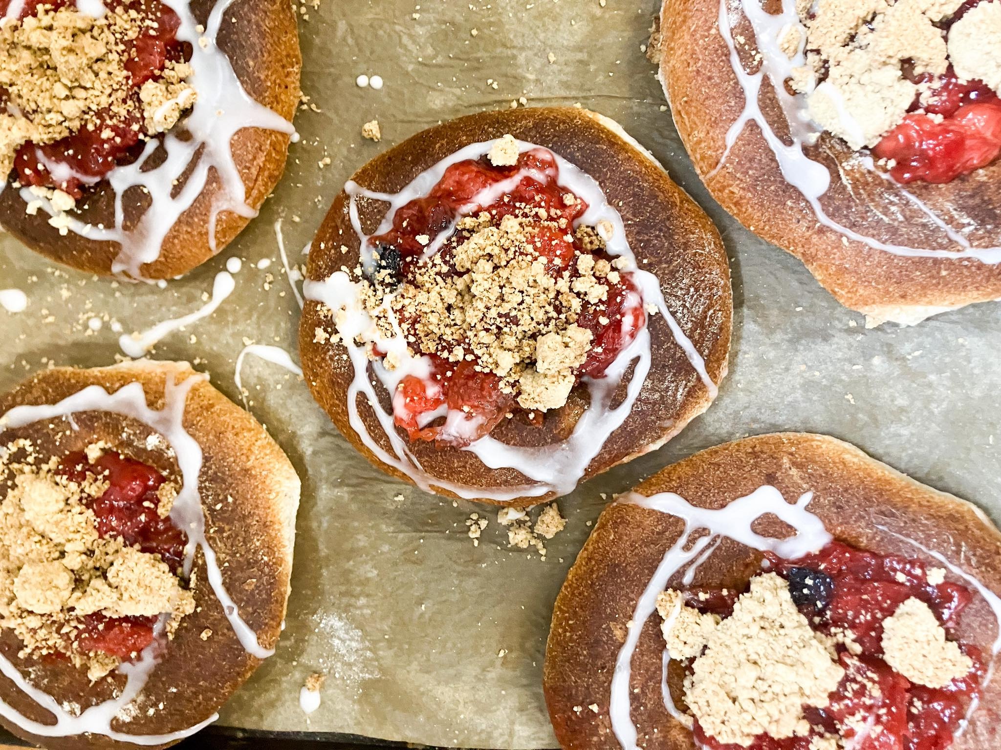 NOWOŚĆ - okrągłe bułki słodkie na zakwasie ze śliwkami (2 szt.) - Bezglutenowe & VEGAN